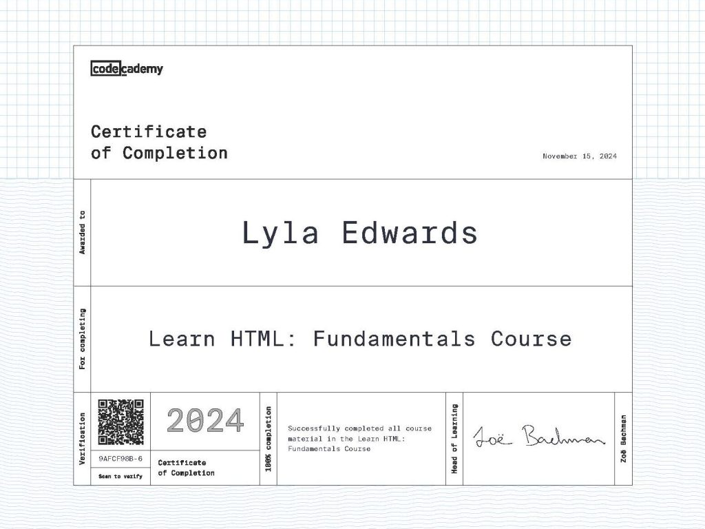 Learning the basics of CSS coding to properly adjust the style of web pages. Throughout the course, I gained skills in adjusting colors, fonts, size, backgrounds, and other visual elements that impact the appearance of a website.